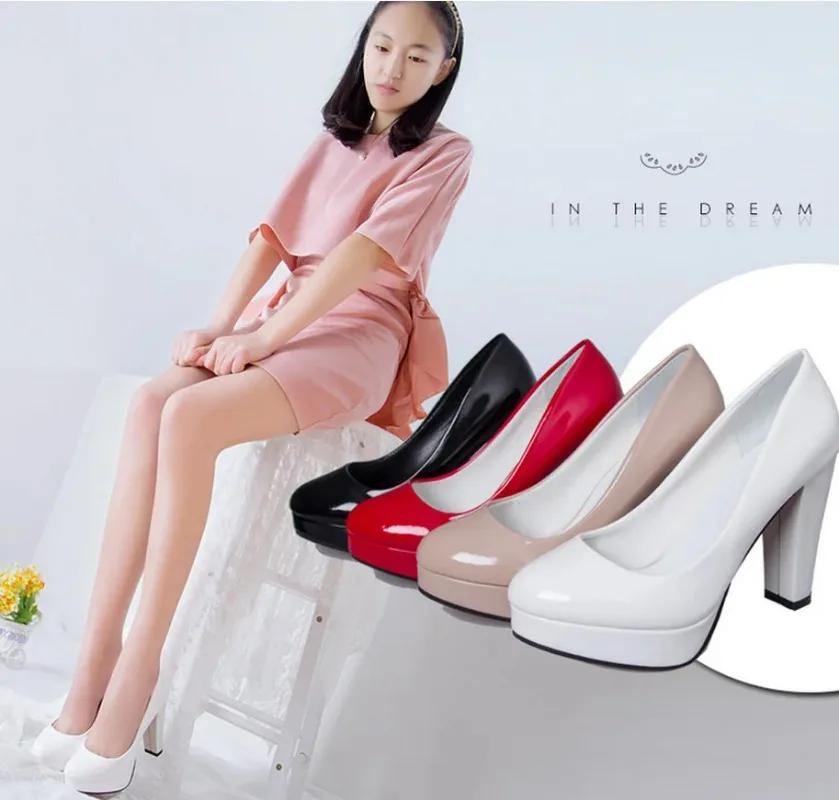 2021Women Pumps Shoes Women PU Leather Shallow Slip-On Round Toe High heels Wedding Party shoes Mujer