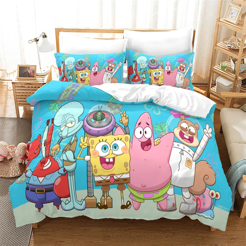 Cute Cartoon 3d Spongebobs Character Printed Bedding Set Duvet Cover Sets Pillowcase AU EU US Twin Queen King Super King Size