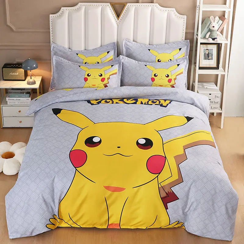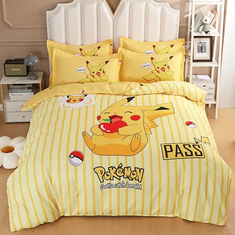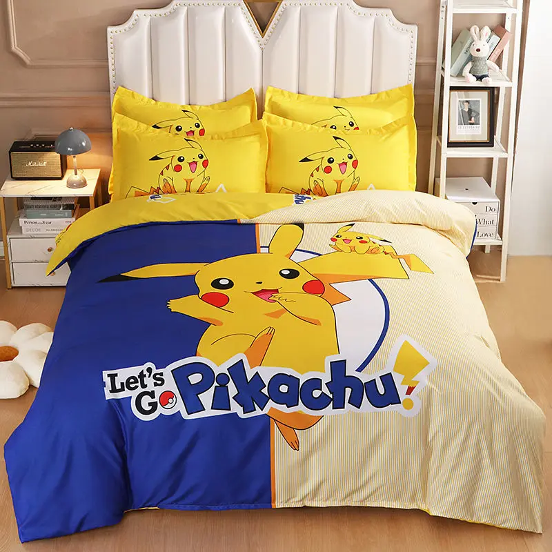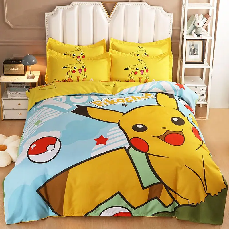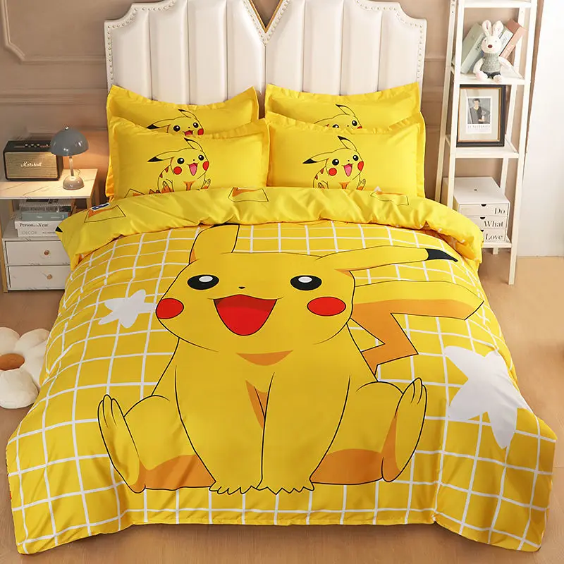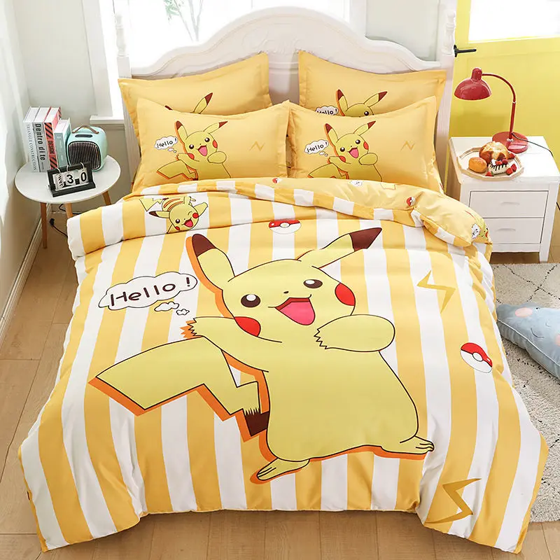 Kawaii Cute Yellow Pikachu Kids Duvet Cover Children Boys and Girls Cartoon Bedding Set Comforter Cover Bedroom Decoration Gifts