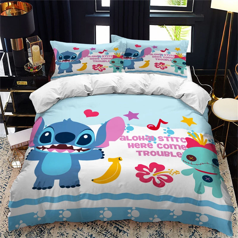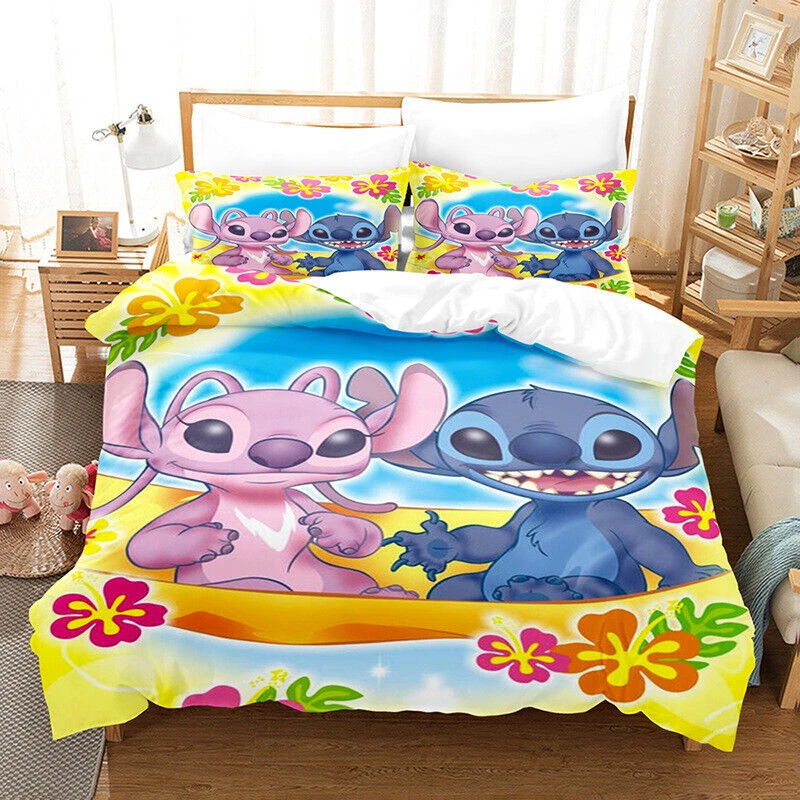 Lilo and Stitch Doona Quilt Duvet Cover Bedding Set Children Adult Single Double King Size Bed Supports Custom Size Text gifts